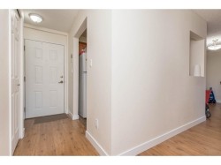 Welcome to THE HAVEN, located in the heart of Central Abbotsford. With no age restrictions, this 910 sq ft, 2 bed/1.5 bath condo offers a practical layout, perfect for first-time buyers or investors. Situated on the elevated first floor above the parking garage, this west-facing unit enjoys added privacy and a sunny balcony—perfect for evening light. The functional floor plan includes a spacious living and dining area, a primary bedroom with convenient ensuite powder room, and a second bedroom ideal for guests or a home office. Shared laundry is located directly across the hall for easy access. This home includes one parking spot (with option to rent more) and storage. Conveniently located close to shopping, transit, and everyday amenities. No pets permitted.