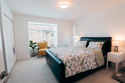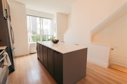 A bright 3-storey, two-bedroom, two-bath townhome designed for modern living. (1,284 sqft via Strata Plan + 414 sqft garage) Unit 13 at Gardner by Mosaic, the entry level offers a versatile den ideal for a home office. Upstairs, soaring 10-foot main-floor ceilings, oversized windows, and light finishes make theopen living space feel airy and inviting. The kitchen impresses with sleek grey cabinetry, quartz counters, stainless steel appliances, and an oversizedisland for casual meals or entertaining. Two spacious bedrooms share a stylish Jack-and-Jill bathroom. Side-by-side double garage and full-lengthdriveway — 4 PARKING SPOTS. Pet-friendly Gardner Park, with easy access to Highstreet shops and Highway 1, combines comfort, convenience, and one of the best values in the complex.
