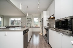 Welcome home to Bristol Heights by Polygon! This bright 1,389 sqft, 3 Bed, 2.5 Bath CORNER UNIT in the sought after Westerleigh community offers contemporary farmhouse style and comfort in a quiet location near GREENSPACE. The spacious open floorplan features 9’ ceilings, stone counters, stainless appliances and a large patio + FENCED YARD that is perfect for kids & pets. Retreat to a generous primary suite with double sinks and oversized spa shower. Convenient powder room on main. Enjoy DOUBLE SIDE-BY-SIDE GARAGE with epoxy floors plus tons of storage. Upgraded SMART THERMOSTATS throughout for modern efficiency. Walk to Discovery Trail, schools, shops & parks and quick commuter access. Resort style Club West amenities include pool, hot tub, gym, cinema, floor hockey, dog wash and lounge.