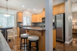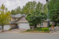 WOW! Talk about privacy! Peace and quiet with no traffic. Possibly the best location in King’s Gate! Super clean 3 level end unit townhome boasting Valley & Mountain views from all patios and decks (North shore mountains). Hardwood floors, 9ft ceilings, crown mouldings, family room & den on main floor. Master suite has large walk-in closet & easily accommodates king sized bed. Visitor parking just steps away. RV parking avail. No age rest + 2 pets ok. Walk to Ledgeview Golf Course. OPEN HOUSE SUNDAY NOVEMBER 30 2PM - 4PM