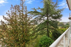 ALL AGES WELCOME! Prestine condition 2 bdrm, 2 bath condo at the back, overlooking school field with an unobstructed view of the north shore mountains. Plenty of room here featuring an eating area in the kitchen plus a formal dining room. Note the very large primary bdrm & living room. Lovely gas fireplace. You can't beat the location. Walk to all levels of shopping, etc. from this lovely gated condo. Enjoy the view from your private and quiet sundeck. Underground parking. Heat INCLUDED in monthly fee! Quick possession possible. This is a great starter or downsize move.