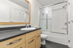 WELCOME TO THIS BEAUTIFUL & BRIGHT 2 BED 2 BATH CONDO AT THE " CROSSING ". Enjoy Your Morning Coffee on your bright SOUTHERN EXPOSURE balcony, Gourmet Kitchen W Granite Countertops, S/S Appliances W 9 FT ceilings open concept living room. Easy access to Hwy 1 and walking distance to the McCallum Crossing shopping, Excellent well managed Strata 2 parking stalls 20, 21 side by side close to elevator. Vacant, available for quick possession.