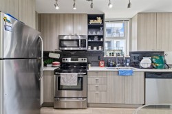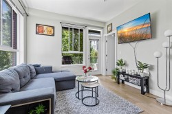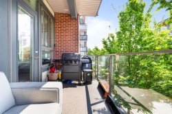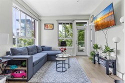 Beautiful South-East corner unit in "Hudson's Loft" conveniently located in trendy Central Village, where you are steps away from trendy restaurants and cafes. This corner unit with over +600 square foot of living space + balcony and features tons bright natural light. 2 Underground parkings side by side and storage locker. Modern contemporary kitchen with stainless steel appliances and high end quartz countertops. Thoughtful floor-plan with enhanced privacy featuring bedrooms on opposite sides. Open house 12:00-2:00pm on June 28 & June 29
