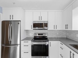 Affordable and convenient CORNER unit that is perfect for first-time buyers or savvy investors! Located just 1 hour away from Vancouver. This bright and inviting home offers a great layout, easy access to Highway 1 and is just a short 3-minute drive to Mill Lake Park, shopping, and everyday amenities. The kitchen has been tastefully updated with quartz countertops, upgraded cabinets and drawers, and stainless steel appliances, along with newer laminate flooring throughout most of the home. The functional layout features a primary bedroom with a 3-piece ensuite. With a full 4-piece 2nd bath this creates the ideal home with space for guests or roommates. Move-in ready and thoughtfully updated, this home offers comfortable, living in a highly convenient location. OH, Feb 14, 1-3pm