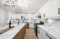 MOVE IN READY! This beautifully transformed 4 bed, 4 bath home offers over 3,000 sq. ft. of living space on a generous 7,200 sq. ft. lot, making it perfect for families. Extensive upgrades include new plumbing, new flooring throughout, brand new kitchen with top-of-the-line SS appliances, brand new windows, updated bathrooms, fresh interior paint, and new exterior siding. The main level features a spacious rec room for upstairs use, while the lower level includes a bright 1 bedroom suite with its own private entry and in-suite laundry, plus the option to convert into a 2 bedroom suite! Detached shop with it's own bathroom provides excellent storage and parking for vehicles, toys, or tools. Located on a quiet street close to schools, parks, shopping, and with easy highway access.