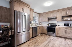 FANTASTIC DEVELOPMENT OPPORTUNITY IN PRIME LOCATION! This GENEROUS 7,140 sq.ft. lot offers INCREDIBLE potential to subdivide (buyer to verify) — a RARE opportunity in a highly desirable neighborhood close to ALL major amenities. The upper level features a bright, open-concept layout with a stylish kitchen, quartz countertops, light wood cabinetry, and stainless steel appliances. Enjoy seamless indoor-outdoor living with a large covered patio—perfect for entertaining. Upstairs includes 3 spacious bedrooms and a 4-piece bathroom, while the lower level offers a self-contained 2-bedroom suite with a 3-piece bath and a storage room—ideal for rental income or extended family. The MASSIVE backyard and patio space provide endless options for relaxing, gardening AND MORE - Don't miss out!