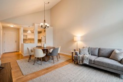 Top-floor corner condo in the unique CityScape building. This 2-bedroom, 2-bath home offers approximately 950 sq. ft. of bright, well-laid-out living space with vaulted ceilings and large windows showcasing mountain views. Enjoy a huge deck ideal for relaxing or entertaining, plus the convenience of in-suite laundry, a storage locker and two parking stalls. Quiet, well-maintained complex with only 13 units but enough space for your furry friends! Centrally located with easy highway access and just minutes to UFV, the hospital, shopping, and the cafés and shops of Downtown Abbotsford. An excellent opportunity for first-time buyers, investors, or empty nesters seeking a low-maintenance lifestyle in a prime location.