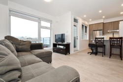 THE COURT! City Center location walking distance to Mall, Superstore, transit and much more. 2021-built third floor condo features 1 bed and 1 den, along with an impressive large outdoor space. The unit includes two dedicated parking spaces, complete with an EV charger conveniently located right outside the property. This home works great for a end user or an investment. two dogs or two cats; or one dog or one cat. one storage locker