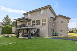 Gated ½-acre property offering privacy, space, and exceptional parking, plus a wired detached workshop. This beautifully designed modern two-storey home with walkout basement features a bright open-concept layout, updated kitchen with newer appliances, coffered ceilings, and a convenient main-floor bedroom. Upstairs offers three spacious bedrooms and an open study area that can easily be converted into a fourth bedroom. The walkout basement includes an additional bedroom, a media room ready for a full theatre setup, and potential for a two-bedroom suite. Outside, enjoy a fully fenced and gated yard, professional landscaping with an in-ground sprinkler system, and ample parking for RVs, boats, and multiple vehicles—perfect for families, hobbyists, or home-based businesses.