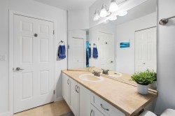 This top-floor corner condo at The Seasons offers a peaceful retreat above the trees with views of lush greenspace and a vibe that’s pure downtown Abbotsford. Inside, you’ll find an airy 1,100 sq. ft. layout with two bedrooms, in-suite storage room, an additional storage locker across the hall, plus 2 parking spots. You've got thoughtful updates throughout—newer floors in the main living space, fresh trim paint, and a refreshed white kitchen and bathroom. Building upgrades include new windows and decks (2020), and your strata fee covers heat and hot water. Walk to coffee, breweries, and boutique shops, or hop on the highway in minutes. Perfect for first-timers or right-sizers alike.