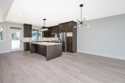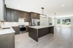 This brand new home located in a quiet established neighbourhood close to a park and schools. 9 ft ceilings throughout all 3 levels and 4 bedrooms. Open floor plan on the main, includes large kitchen w/island and seating area, all main floor kitchen appliances, hard surface counter tops thru out main, dining area and living room complete with floor to ceiling stone gas fireplace. Home has front sun deck with glass railing and a covered rear patio, rough ins for BBQ and AC. Upper floor has 3 large bedrooms with a 3 piece bath for the kids. Master bedroom is complete with walk in closet and ensuite includes two sink and amazing large tile shower. Basement contains 1 bdrm suite complete with laundry. Fully fenced and landscaped.