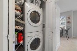 CORNER UNIT with OVERSIZED YARD! Bright and spacious 2-bed, 2-bath townhome at Brighton with tons of NATURAL LIGHT. Main floor features soaring 9' ceilings, a huge island kitchen with stone countertops, stainless steel appliances, and an open-concept living and dining area perfect for entertaining. Upstairs offers two generous bedrooms, including a master suite with walk-in shower and his-and-her sinks. Enjoy a 2-car garage, visitor parking right beside home, and a LARGE private BACKYARD backing the Discovery Trail with serene greenspace views. Access 8,500 SQFT of Club West amenities, including pool & hot tub, gym, hockey room, fireside lounge, pool table and media room, theatre, dog wash station. Minutes to highway, Mall shops, and restaurants. Contact your Realtor to book a showing!