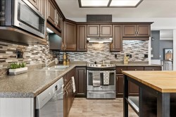 Welcome to Still Creek! This rancher with a basement sits on the largest lot in the complex, tucked in a quiet cul-de-sac and backing onto a serene greenbelt. With over 3,000 sq ft, this well-maintained home offers 4 beds and 3 baths, thoughtfully laid out for everyday living.The main floor features a roomy kitchen with island and s&s appliances, cozy yet functional living and dining areas, and the primary bedroom plus two additional bedrooms, with a balcony overlooking the trees. Downstairs, enjoy extra living space, a bedroom, and plenty of storage, with walk-out access to the patio. Complete with a double garage, newer roof, and a family & pet friendly, well-run strata, this home is close to schools, parks, shopping & transit. Offering space, comfort, & a real sense of retreat.