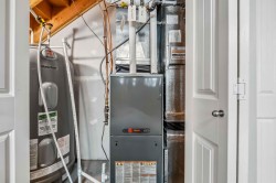 Spacious Duplex-Style Townhome in Ledgeview Villas! Quietly tucked away, this beautifully maintained home features open-concept main level with hardwood flrs, 9’ ceilings, crown molding, gas FP & convenient powder rm. Kitchen offers granite counters, quality cabinets & newer stainless-steel appliances. Upstairs offers 3 bdrms, laundry, 4-pc bath, primary suite with WI closet & 5-pc ensuite. Fully finished basement with bdrm, 4-pc bath, wet bar, large fam rm, extra storage & separate entrance. Updates incl carpet, paint, HE furnace w/smart thermostat, Rheem Marathon HW tank, EV charging outlet & front patio awning. Private, fenced yard backs onto lush green space. Fantastic East Abby location near great schools, golf, trails & quick freeway access. Pet friendly(2 pets, no size restrictions)