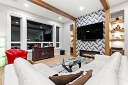 Experience luxury living here! Nearly 5,000 sqft reverse 2 storey+bsmt home with unobstructed Mt Baker & Valley views! The main floor features an open-concept design with a chef’s kitchen boasting Bosch appliances, custom cabinetry and gold accents along with a stunning primary bedroom with a spa-inspired ensuite with dual walk-ins, and a second bedroom/flex room perfect for an office or guest room. The lower level offers another primary bedroom with 2 additional rooms, full bath, large rec room with its own entry, and a covered balcony. The bottom level includes a media room with wet bar, full bathroom, and another walk-out access to the covered hot tub along with a private one bedroom suite with separate entry. Home also features A/C, triple car garage, irrigation, & low maintenance yard