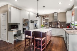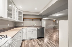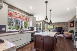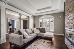 RARE opportunity!!!! A 7 BDRM 2 kitchen executive custom home in a sought-after exclusive neighbourhood. Located in a quiet cul-de-sac,w/ huge solid main floor windows open kitchen Familyroom backing directly onto greenbelt, this property offers privacy, nature, access to trails & peaceful sounds of the distant creek. A usable pie-shaped lot features a level yard & staggered rock landscaping, a beautiful patio plumbed for Htub. W/brick exterior, soaring 18-foot entry, sculpted ceilings thruout, formal den off the foyer, livingroom w/floor to ceiling stacked rock gas f/p. Extensive renos in 2013/2014, wide-plank engineered Hickory hardwood floors, open concept fam.room to kitchen w/ stunning granite counters, topshelf appliances double ovens, primary suite 1 or 3bdrm bsmt suite