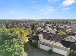 Welcome to LakePointe Villas, nestled around Ponderosa Park Lake and linked to the Discovery Trail system! This rare rancher-style end-unit townhouse with a walkout basement offers luxurious, low-maintenance living in one of Abbotsford’s most desirable communities. Enjoy a brand-new 2025 roof, views of the Airshow from your main floor sundeck, and added privacy beside mature greenery. The spacious layout includes 3 bedrooms, 3 full bathrooms, soaring 12-ft ceilings in the living room, granite counters, crown moulding, laminate floors, new carpet on stairs, and updated appliances. The basement boasts a large rec room, large workshop with water and 220 power, carpeted crawlspace, and a covered patio. Additional features include a new furnace & A/C. RV parking available. Pets allowed!