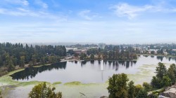 East-facing condo in Mahogany at Mill Lake! Enjoy breathtaking views of Mt. Baker and Mill Lake through floor-to-ceiling windows that flood the home with natural light. This 2-bedroom, 2-bath residence features geothermal heating and cooling, engineered hardwood flooring, heated tile bathroom floors, high-end fixtures, a gas fireplace, and a spa-inspired ensuite with a rain shower. Mahogany offers resort-style amenities including an indoor pool, hot tub, fitness centre, bistro, workshop, outdoor BBQ area, car wash, and 2 guest suites. Just steps to shopping, dining, and Abbotsford Regional Hospital, this home combines luxury living with unbeatable convenience.