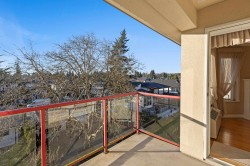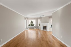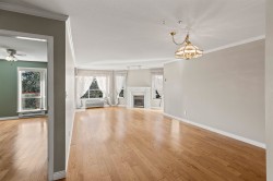 Wedgewood is a sought-after 55+ community offering comfortable, low-maintenance living. This bright top-floor corner suite spans 1,375 sq. ft. and features a skylit layout with 2 bedrooms and 2 bathrooms, including a fully renovated ensuite, new closet system, and new carpet in the primary bedroom. Oak flooring, a cozy gas fireplace, formal dining area, spacious kitchen with eating area, in-suite laundry, and two in-unit storage rooms add everyday convenience. Enjoy excellent amenities including a rooftop patio, library, workshop, exercise room, gardening area, recreation centre, and guest suites. Strata fees include electricity, gas, heat, and water. Centrally located within walking distance to shopping, transit, banks, and medical offices. One parking stall, No Pets.