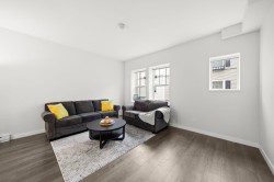 This stunning very well maintained CORNER UNIT with 3-bedroom, 2.5-bath home offers modern living with thoughtful design. Located in the heart of Abbotsford, just off South Fraser Way. This development is within walking distance of shops and services. This home features an entertainer style kitchen with quartz countertops and sleek stainless steel appliances package, contemporary wide plank laminate flooring throughout, and a spacious balcony. Even with being in a townhome, you get a great outdoor space and a fairly large yard! Includes a garage for easy storage and a private backyard for gardening and entertaining. Stay active close to home with the Alder Club private amenities including a large, fully equipped gym and a yoga and meditation space. Book your showings today.