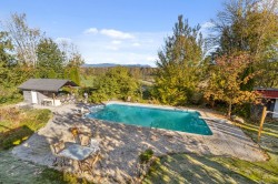 Gorgeous updated Shaughnessy style heritage home on gently rolling 8+ acres just minutes from historic Fort Langley. Leave the hectic world behind as you enter the curved driveway surrounded by nature and enter your own private paradise.This property's topography is reminiscent of a charming English garden featuring an abundance of flowers, shrubs and fruit trees set amongst flagstone and river rock. The backyard is an entertainers dream with multiple patios and decks, and spectacular mountain view.A shimmering custom 20x40 salt water pool with an inground solar blanket is complimented by a covered sit-up bar with built-in fridge and BBQ.Numerous outbuildings including a 740 sq ft studio plus basement.
