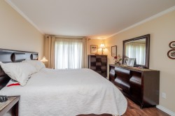 Master bedroom on the main along with large living room and kitchen with bright eating area. Upstairs has the study / flex room & bedroom. The basement has 3rd bedroom, rec-room & is ready for workshop, games room, etc.. This home offers 2 covered patios with southern exposure and south facing backyard perfect for gardeners. Complex is centrally located, close to all amenities, walking trails and Horne Creek Park. Chairlift in home available to stay as well.