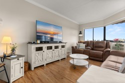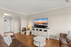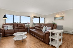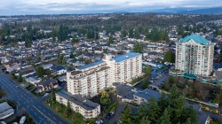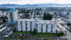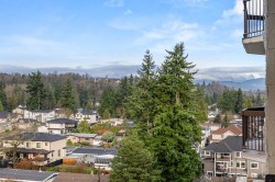 Beautifully UPDATED 9th floor unit w/ OVER 1,000 sqft of peacefull Living. This lovely condo offers abundant natural light & stunning 180 degree MOUNTAIN & City VIEWS, so you can enjoy incredible Sunsets from your patio. Thoughful Renovations include a BRIGHT kitchen w/ newer appliances, full bathroom reno's in both bathrooms, tasteful light fixtures, high quality flooring and crown molding throughout. PRICED TO MOVE in this well managed building which includes Aqua-cise in the indoor pools, games nights, movie nights, workshop for hobbies and more... perfect for an active, connected lifestyle in the heart of Abbotsford or a quiet sunset close to parks.