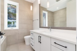 Discover the pinnacle of coastal living at Seymour Landing, where sunshine abounds and the Vancouver skyline blends with the shimmering sea. Be captivated by seasonal sightings of humpback whales and orcas gliding along the coast. This residence is set just 125 feet from the shoreline—a rare find on Bowen, where many waterfront homes are perched high and set back. From the double-height front entry, enjoy unobstructed views through the open-concept living, dining, and kitchen area straight to the ocean. Boasting upscale, distinctive finishes and a main-level primary suite with a steam shower, this newly built 3,600 sq ft home appeals to buyers with a taste for elegance. A quick trail walk brings you to the nearby golf course within minutes.
