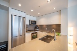 Welcome to The Chancellor — Your Urban Retreat in the Heart of Metrotown Tucked away on the quiet side of Metrotown Centre, just across from The Bay, this bright and spacious 2-bed, 2-bath condo offers a perfect blend of comfort and convenience. With a smart, open layout, this home is designed for easy living. The kitchen features sleek stainless steel appliances, complemented by brand-new laminate flooring and fresh paint, which create a clean, modern space. The unit also includes one parking stall and storage. Everything you need is just steps away: Walk to the SkyTrain station with direct transit to downtown Vancouver, Richmond. Explore Bonsor Recreation Complex, local parks, and world-class shopping and dining at Metrotown. Handicap Parking P2-184, close to the Elevator.