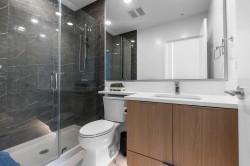 Azure?II, a striking 28-storey concrete and glass tower by Ledingham?McAllister in Southgate City, this adaptable 2-bed, 2-bath suite features an expansive 11-ft ceiling, creating a dramatic sense of space and volume. Floor-to-ceiling windows flood the open-concept living area with natural light. At the heart of the gourmet kitchen lies a gas cooktop, full stainless-steel appliance package, and complemented quartz countertops. Just steps from Edmonds SkyTrain, grocery, dining, parks, and a future ice rink.