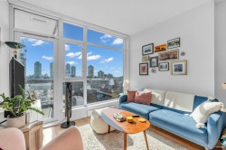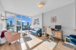 CENTRAL LOCATION!!! Discover the pinnacle of city living at STATION SQUARE'S 35-storey Tower One! A sunlit one-bedroom with spanning 603 sq ft, complete with a private balcony nestled on the 11th floor. Greet each morning with weeping southeast views that frame the energy of dynamic Metrotown, while the hallway-free open floor plan fills the space with natural light and serene quiet. Indulge in top-tier amenities: 24/7 concierge and security for peace of mind, a fully equipped fitness centre, a yoga studio, a welcoming guest suite, a lively entertainment pavilion, and lush playgrounds and gardens for relaxation. Location is unbeatable - directly connected to Metropolis and Crystal Mall for shopping and dinning. Plus, just steps from transit stops, the local library, and community centre.