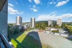 Discover "The Oak"—a north-facing interior condominium offering panoramic city and mountain views. This two-bedroom residence features a practical floor plan, updated flooring in excellent condition, and a north-facing balcony that provides consistent natural light, reduced heat exposure, and seasonal scenic variations for enhanced living comfort. Maintenance fees cover electricity, hot water, and heat. Includes one parking stall and locker. Building amenities: indoor pool, gym, whirlpool, and clubhouse with billiards. Ideally located near Lougheed Mall, SkyTrain, dining options, Cameron Library, and recreational facilities. This well-maintained concrete structure exemplifies pride of ownership.