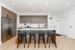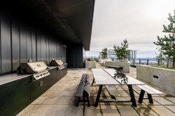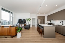 Experience elevated living in this stunning penthouse at The Hamilton by Mosaic, offering sweeping panoramic views from every room. One of only three exclusive penthouse homes, this 2-bedroom plus unit features soaring 10-foot ceilings and a thoughtfully designed layout that maximizes spacious, space, and comfort. The modern kitchen and bathrooms are finished in a sophisticated neutral palette and equipped with appliances including Fisher & Paykel refrigerator, 5-burner gas range & integrated dishwasher-perfect for both daily living and entertaining. Step outside to an oversized 215 sq ft patio complete with gas hookup and water bib, ideal for enjoying the scenery year-round. Just steps to transit, shopping, cafes, restaurants, schools, etc.