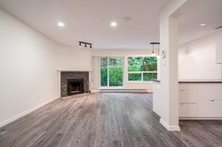 Experience contemporary living in this elegantly updated and freshly repainted two-level townhouse featuring three well-appointed bedrooms and 1.5 baths. The open-concept chef's kitchen boasts stainless steel appliances, quartz countertops, and new laminate flooring. A spacious living room with a cozy wood-burning fireplace opens to a private enclosed patio, perfect for morning coffee or summer BBQs. This well-managed complex offers lush gardens, an updated swimming pool, and a tennis court. Pets and rentals are welcome. Includes garage parking, visitor parking, and a small storage space for added convenience.