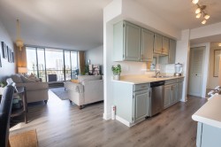 2-bed penthouse in a steel/concrete high-rise with 270-degree view from the north shore ski hills to the Gulf Islands. Unit 1404 has 2 very large full-sized bedrooms with ample space for a king-sized bed, sitting area or desk. Large kitchen to dining area & larger living room with sliding glass doors to a large balcony. In-suite laundry, 1 secured parking & large locker. Short walk to many banking facilities, groceries, medical offices, pharmacies, coffee shops & eateries. Edmonds Community Centre has a swimming pool, gymnasium, a full range of programs from pre-school activities to age 55+ programs. Burnaby Public Library & Edmonds Skytrain are a short walk of your new penthouse suite.