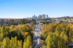 Enjoy panoramic city & mountain views from this beautifully renovated 1-bed, 1-bath home at The Maple at Timberlea. Bright & spacious with new flooring, paint, custom cabinetry & updated appliances. Open layout with large windows brings in abundant natural light. Fantastic amenities include indoor pool, hot tub, sauna, gym & lounge. Strata fee includes heat, hot water & electricity! Steps to Lougheed Town Centre, SkyTrain, shops, restaurants & parks - perfect for first-time buyers, downsizers or investors!