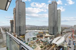 BETTER THAN NEW! Over 860sqft. 2 BED, 2 BATH, 2 STORAGE LOCKERS Freshly Painted! Bedrooms are set up for ultimate privacy on either side of the condo perfect for roommates! Spacious kitchen with Gas Cook top and Breakfast Bar, Quartz Countertops and AC for Warm Summer Days! Oversize Glass Walls capture Breathtaking Mountain Views from each Room! 24hr CONCIERGE, Fully equipped Gym, hotel style change rooms with showers, 49th Level Lounge with full Catering kitchen for up to 100 guests and 360 degree VIEWS from indoor and outdoor spaces, Basketball Court, Pickleball, outdoor Courtyards with BBQ’s for gatherings. Embrace an elevated lifestyle in this picturesque haven—with Steps to Transit, atop the Amazing Brentwood, Whole Foods and all your modern conveniences!