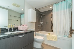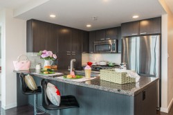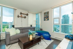 Welcome to this spacious 2 beds & 2 baths corner executive suite at AFFINITY quality built by Bosa at booming Brentwood area! Very big living & dinging areas,full size gourmet kitchen w/stainless steel appliances, full size gas stove, fridge & dishwasher! Newly updated beautiful LG washtower! Big outdoor covered balcony for entertainment! 2 separate-side bdrms provide more privacy & 2 great size baths! Corner unit w/nice airy flow through out! Two favourite side by side parking stalls add much more value & one storage locker in very secured building! Easy access to Brendwood mall shopping, sky train, SFU, BCIT, Costco, highway, Vancouver downtown! Looking for a fabulous urban living life & amazing snow-capped mountains & metropolitan views, this is it!Open house Sat 20 & Sun 21 from 2-4pm.