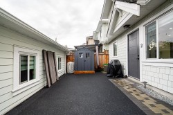 Like-new, quiet back 1/2 duplex in the heart of Burnaby — with no strata fees! Blending timeless character w/modern design, this home features a bright, open-concept layout perfect for family living. Enjoy radiant in-floor heating, AC, HRV, a security system, & a gourmet kitchen w/ premium stainless steel appliances & a gas stove. Upstairs offers spacious bedrooms w/ elegant finishes & plenty of natural light. The private fenced backyard includes soft padded flooring for added comfort & safety, ideal for children. Additional highlights include a garage equipped w/EV charging. Ideally located near Deer Lake Park, Metrotown, Brentwood, BCIT, & Hwy 1, Burnaby Central Secondary & Douglas Road Elementary.