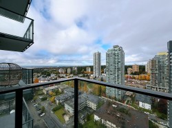 Welcome to contemporary urban living at the heart of Burnaby's Metrotown. This stylish 1-bedroom home in a 1-year-old concrete tower features air conditioning, premium Miele appliances, sleek cabinetry, and functional open-concept design. Enjoy beautiful city and mountain views from your private space. Comes with 1 parking and 1 storage locker. Outstanding amenities include concierge, fitness and yoga rooms, theatre, games lounge, outdoor BBQ area, and dog wash station. Steps to Metrotown SkyTrain, Metropolis Mall, Crystal Mall, Central Park, and vibrant local cafes and shops.