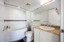 Bright 2 bedroom corner home at AXIS, steps from Highgate Village in Burnaby. Large windows bring in natural light, and an oversized patio offers city and mountain views. The open layout links a modern kitchen with stainless steel appliances, granite countertops and porcelain tile to the living and dining areas. The primary suite has a 4 piece bath with a deep soaker tub; the second bedroom suits guests or a home office. In suite laundry, one secured underground parking stall and a storage locker. Amenities include a fitness centre, party room and garden play area. Walk to the Nikkei Cultural Centre, Edmonds Community Centre, library, SkyTrain, shops and banks.