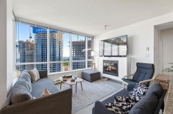 Discover this rarely available South East facing Corner suite in Centerpoint offering 2 bedrooms & 2 full bathrooms. This 880 sq. ft. unit boasts breathtaking views of the Mountains, Deer Lake & the city which are accessible from its spacious balcony & primary bedroom. This functional layout features an open kitchen with granite countertops, floor to ceiling windows, an excellent separation between the two bedrooms, a distinct dining & living room area perfect for entertaining & convenient in-suite laundry. Centerpoint offers exceptional amenities, including a gym, rooftop garden & recreation room. 1 parking & 1 storage. Call today for private viewing!