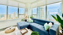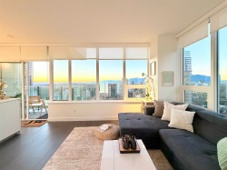 Everything is JUST RIGHT for this lovely 2bed2bath corner unit at Maywood On the Park. HEIGHT- start from 27F you can look beyond the trees of Central Park and enjoin the view of the sea inlet and Vancouver downtown, also panoramic view of dynamic Metrotowncity, lakes, Fraser river, Vancouver island, North shore mountains; LOCATION-Directly connected to Community park, Central Park and Metropolis / Skytrain Station 5min walk; LAYOUT- compact but cozy bedrooms leave space for the rarely found large living/dining area about 15x20 feet; FEATURE -Whirl Pool 30" W/D, Bosch kitchen appliances, Duravit sanitary ware, Heated master ensuite floor, over-sized double-glazed windows... BONUS- 2 parkings(1EV)! life quality,Convenience,Tool against inflation... not a hard decision, come visit this SAT!