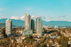 Jaw Dropping North Facing MOUNTAIN VIEW w/ 9ft ceilings & picturesque floor to ceiling windows! A sizeable 1 bed condo that makes you feel like you're on top of the world! And you're next door to Edmonds Skytrain making it a great purchase to move into or rent out as an income property. Other Features: a gourmet kitchen, gas stove, stainless steel appliances, granite countertops, refinished cabinets & laminate flooring. Enjoy the view inside with a cozy gas fireplace. Or outside on your private & spacious 100sqft patio. Well run & proactive strata w/ caretaker & excellent amenities. Immediate skytrain access to get around the city, or keep it close surrounded by parks, shops, recreation, restaurants, schools & more a short walk away! 1 Parking/Storage. 2 Pets/Rentals allowed.