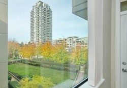 CONCRETE high rise built by Bosa. West facing unit overlooking the BEAUTIFUL courtyard. 1 bedroom & 1 bath features a great layout with fireplace in living room. Modern kitchen with granite countertops, Stainless steel appliances, gas range cooktop, wood-grained laminate cabinets & sit up bar. Large primary bedroom with access to balcony, walkthrough to bathroom and a deep soaker tub. Very well maintained by one owner. IMMACULATE condition and is almost LIKE NEW (seller seldom lives here). Amenities include a fully equipped gym & a BIG lounge. Building adjacent to Highgate Village Centre with Save-On-Foods, Shoppers Drug Mart & Starbucks Close to Edmonds Skytrain Station, steps to Library and few minutes walk to Edmond Community Centre. 1 parking & 1 locker. Viewing by appointment only.