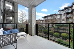 Award-winning GREEN development by eco-conscious builder Adera, nestled in Byrne Creek Ravine Park! This 1 bedroom + den, 1 bath condo boasts an open layout with a well-designed kitchen featuring granite countertops & SS appliances, seamlessly connected to the dining area and a living room with a cozy electric fireplace. High-quality laminate flooring, in-suite laundry & a private balcony overlooking a garden and tranquil water features complete this charming home. Includes 1 parking & 1 locker; complex has EV chargers and ample visitor parking. Pets & rentals allowed. Seasons Club amenities: gym, sauna, yoga studio, lounge, party room, playground and outdoor BBQ. Conveniently located near Taylor Park Elementary, Edmonds Skytrain, Market Crossing & Highgate Malls and Riverway Golf Course.