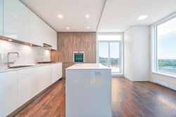 Welcome to Amazing Brentwood Building 3! This 32nd Floor South Facing Corner unit has breathtaking mountains and city views from every room! Built by the renowned Shape Properties known for their excellent quality and craftsmanship. This home features 2 bedrooms 2 bathrooms with 777 sqft of living space, and a large 384 sqft wrap-around outdoor patio with panoramic views. Its gourmet kitchen with Bosch appliances and open layout is perfect for entertaining! Comes with EV parking with FREE charging! Located in the heart of Brentwood this home is steps to shopping, transit, recreation and much more! Book your private showing today! Openhouse: Dec 20 Saturday 1:30pm to 3pm