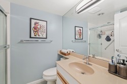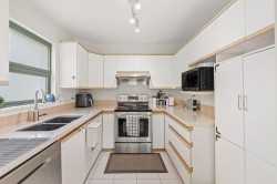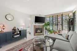 Spacious and practical 2-bedroom, 2-bathroom corner home designed for everyday living. Enjoy a bright open layout with a dedicated dining area, cozy gas fireplace, and a large private balcony. The recently renovated kitchen boasts quartz countertops, stainless steel appliances, and ample cabinet space. Both bedrooms are generously sized, with the primary featuring a private ensuite. Freshly painted and move-in ready, complete with in-suite laundry, 1 parking, and 1 storage locker. In a well-maintained building, just steps to Starbucks, Save-On-Foods, Highgate Village, and minutes to Edmonds SkyTrain and Metrotown. Perfect for first-time buyers or small families! Open house this Sunday - October 26, 2025!