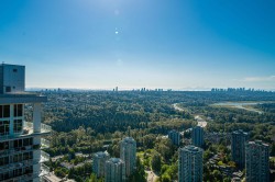 This true 3-bedroom, 3-bath corner home sits high on the 50th floor, offering breathtaking southeast views of the Fraser River, golf course, and mountains. Every bedroom is full-sized with windows and closets, and two are ensuites—an exceptionally rare layout ensuring comfort and privacy. Each room opens onto oversized balconies, perfect for entertaining or relaxing above the skyline. Inside, enjoy a bright open layout, Bosch appliances, and elegant modern design. Residents benefit from 18,000 sq.ft.. of amenities, concierge service, and direct access to shopping, dining, and SkyTrain. Perfect for multifamily living, Units 5001 & 5002 can also be purchased together, creating a spacious 5-bedroom, 5-bath residence with over 2,000 sq.ft.. of liviliving space providing privacy and convenience