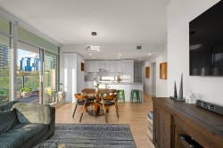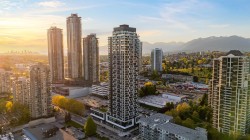 CALLING ALL PATIO LOVERS, This One’s for You! Welcome to The BIG PATIO Unit at Akimbo — a striking architectural landmark in the heart of Brentwood. This rare west-facing 2 bed + den features a massive 650 sq. ft. patio, perfect for entertaining, relaxing, or creating your own outdoor oasis. Inside, enjoy a chef-inspired kitchen with quartz counters, integrated appliances, and floor-to-ceiling windows with stunning sunset views. The versatile den is ideal for an office, nursery, or Peloton setup. Includes full-size EV-ready parking and a storage locker. Akimbo offers 24/7 concierge, a gym, lounge, and landscaped terrace— All of this just steps from Brentwood Mall, the SkyTrain, top-rated restaurants, and everyday conveniences. But with a patio like this, you might never want to leave.